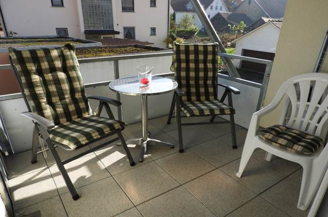 die Wohnung über dem Eingangsportal mit dem überdachten Balkon nach Osten! Die